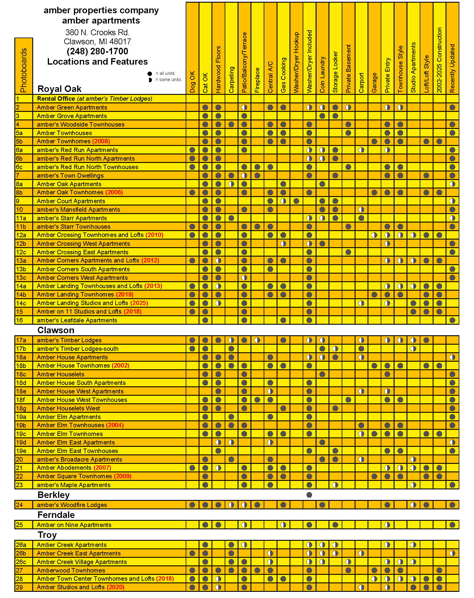 All Amber Apartments include: refrigerator, stove, dishwasher, garbage disposer, air conditioner, and vertical/horizontal blinds.